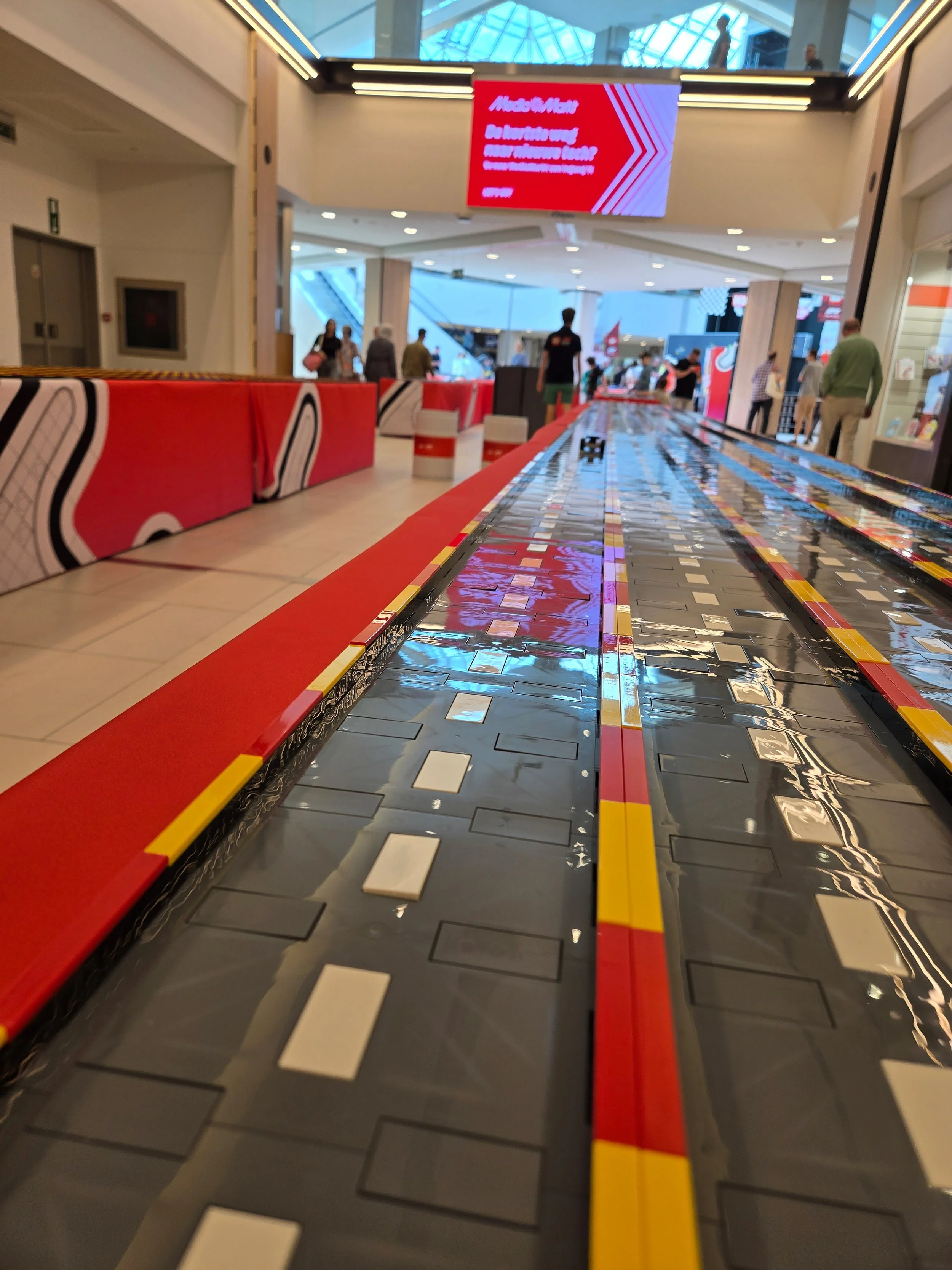 Met maar liefst 200.000 steentjes bouwden 90 LEGO Masters en LEGO fans de langste LEGO F1 racetrack ter wereld in Wijnegem Shop Eat Enjoy. En daarmee staat het wereldrecord nu op 800 meter! Kinderen (en hun ouders) hadden de grootste lol met het testen van de schans en het afleggen van het hele parcours.